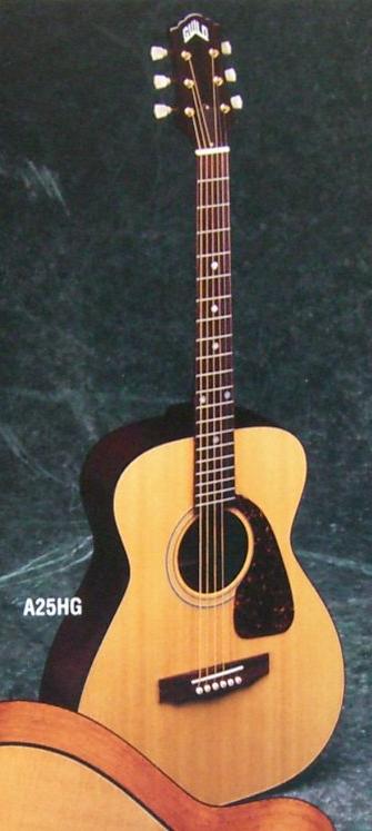 The Guild Concert Series are a very special small-body (15" x 4 3/16") guitars created in the tradition of fingerstyle instruments from the past. The A25 Concert guitars are the most affordable all-solid-wood guitars made in the U.S.A. They feature mahogany bodies with solid sitka spruce tops, and are available in both high gloss and hand-rubbed finishes