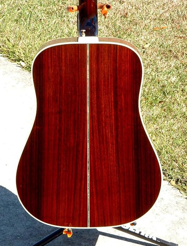 The Deco has back and sides of solid Indian rosewood with ornate multiple binding. The 3-ply mahogany/maple/mahogany neck is 1.70" at the nut to accommodate anything from bluegrass to finger-style jazz, and is faced with a bound ebony fingerboard, inlaid with the distinctive Art Deco pearl/abalone pattern.