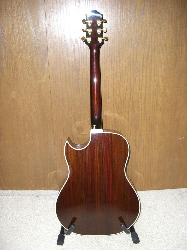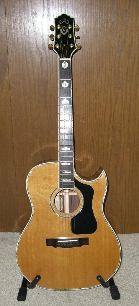 The Guild custom shop G-75-RC features solid rosewood back and sides, a solid AAA Sitka Spruce top with delicate Abalone trim, and the Custom Shop's signature "floating X" scalloped bracing pattern. Only six ever made.